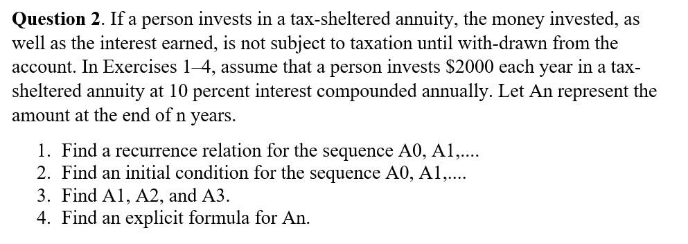 Solved 2 If A Person Invests In A Tax Sheltered Annuity Chegg Com